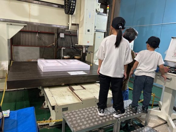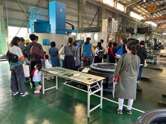 我社の工場見学ツアーは機械工場の見学です。鋳物の材料や砂型・製品の展示、又機械加工の様子も身近で見学して頂きました。
