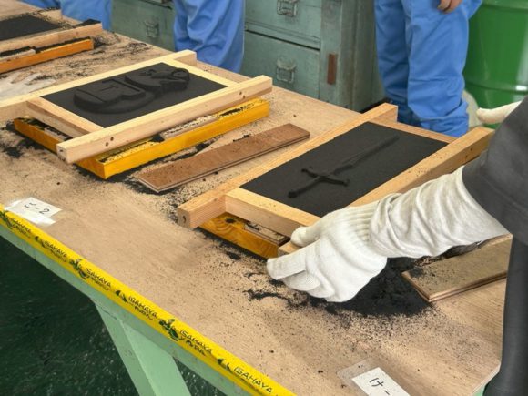 ワークショップは鋳物の鋳型造りの職場体験を行いました。参加者は初めて触る鋳物砂や砂が固まる様子、きれいに完成した砂型を取り出した時には歓声も上がっていました。