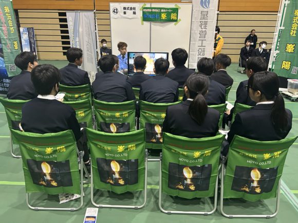 今回は7クールにて説明会が行われ、合わせて87名の生徒さんに会社概要やものづくりの方法を説明し、我社の魅力や働きやすさもアピールしました。